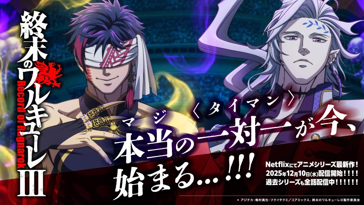2025年12月にNetflix配信後、48の国と地域でNetflix週間TOP10を達成、うち5か国では1位を獲得した、世界で大注目の作品『終末のワルキューレⅢ』!4月3日(金)より MBS/TOKYO MX/BS11にて、TV放送開始!!